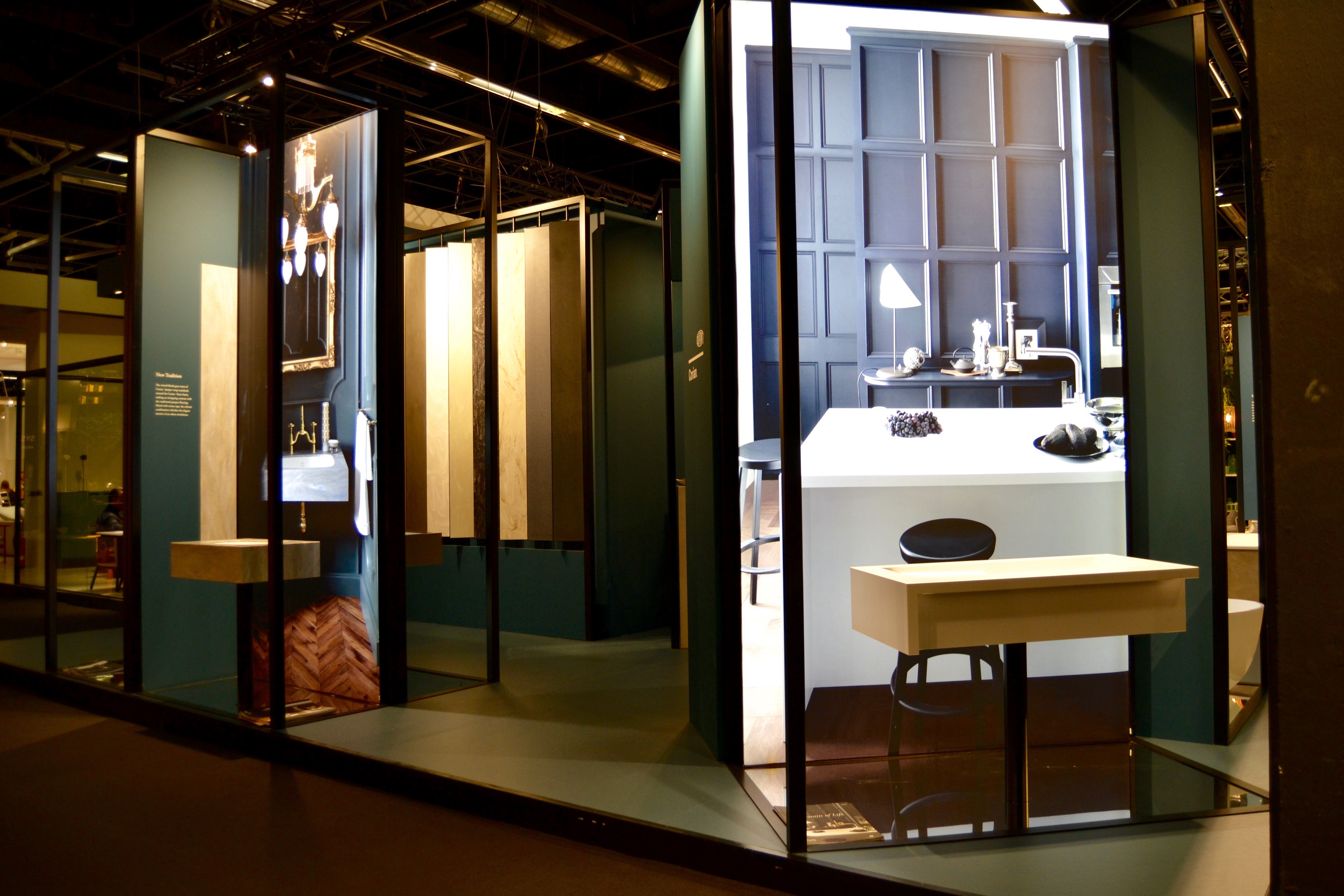 The installations at Corian® stand will also include surface solutions, both horizontal and vertical, made with colours of Corian® manufactured with exclusive manufacturing processes called DeepColour™ Technology.(advanced materials in dark colours providing superior color depth and wear resistance, improved fabrication properties) and Fusion™ Technology (featuring random veinings and particles into a solid tone matrix).