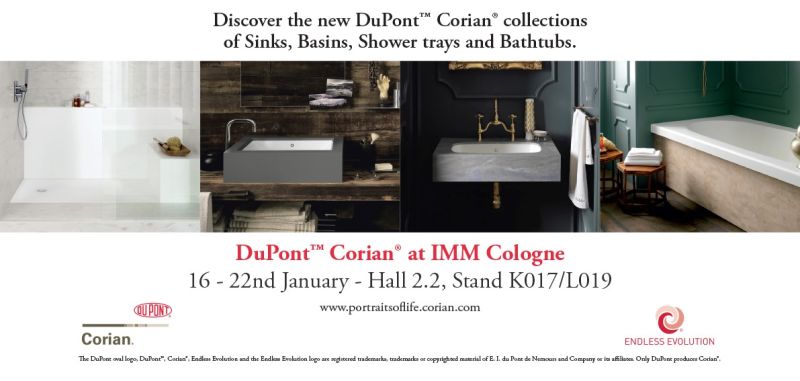 January 2017 - In its stand at imm cologne 2017 international exhibition for furnishing industry Corian® displays its renewed and expanded offering kitchen and bathroom environments, and ranges of fascinating colours made with unique manufacturing technologies. The superior beauty and versatility of Corian® solutions will be shown to visitors through fascinating and elegant installations inspired by its successful “Portraits of Life” communication project.