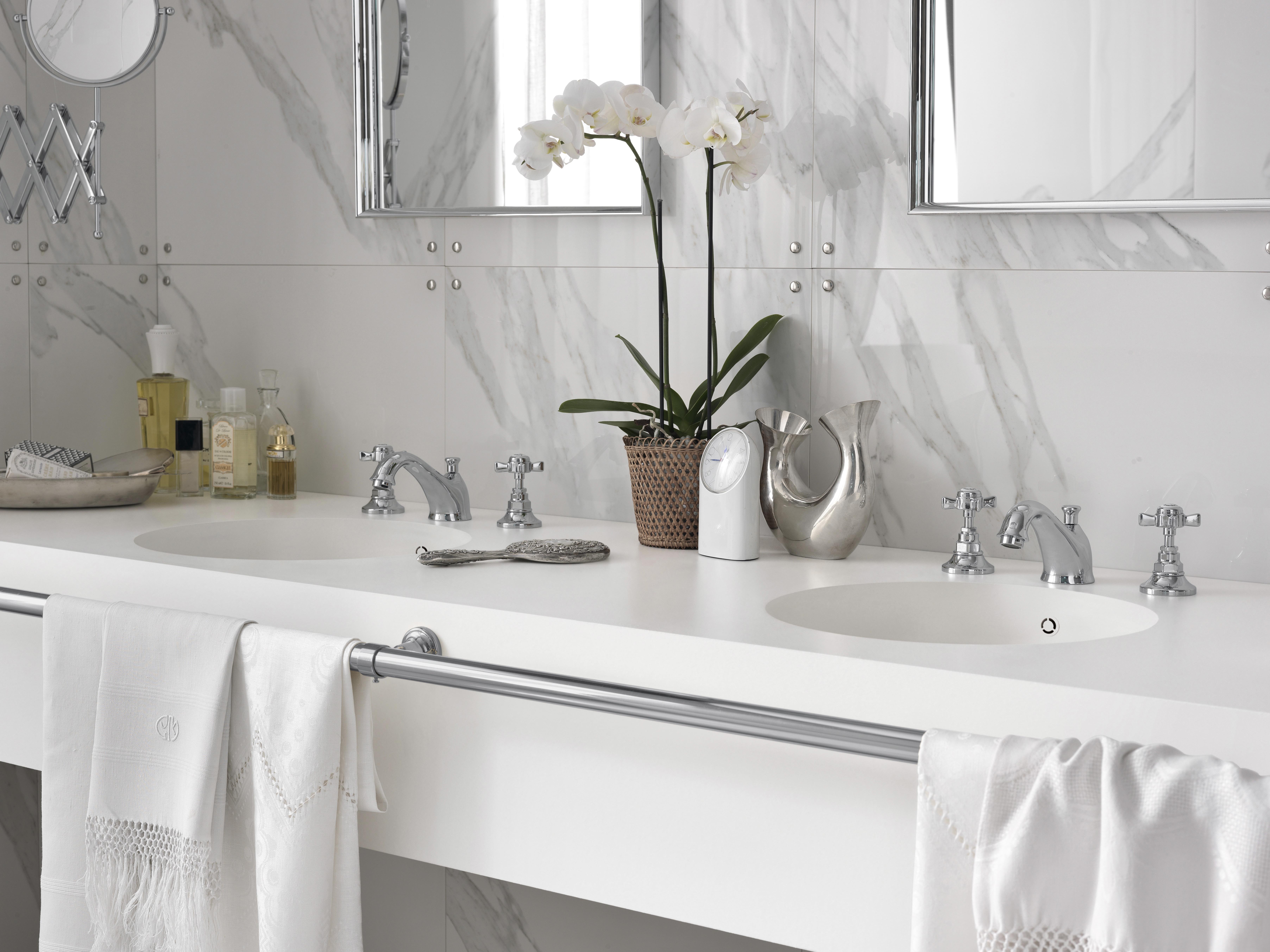 Corian® products, such as basins and backsplashes, can be perfectly integrated to create the sleek impression of a single flowing surface. With seamlessly streamlined features, there are no visible joints or cracks to collect dirt and moisture.