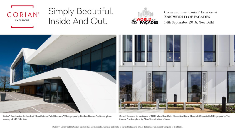 Discover Corian® Exteriors at ZAK World of Façades, New Delhi, September 14th, 2018 - at the Hyatt Regency, The Mansion Oval Room, Ground Floor, Bhikaji Cama Place, Ring Road, New Delhi.